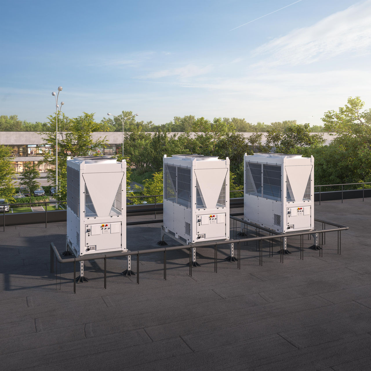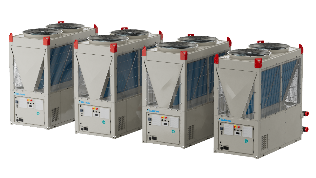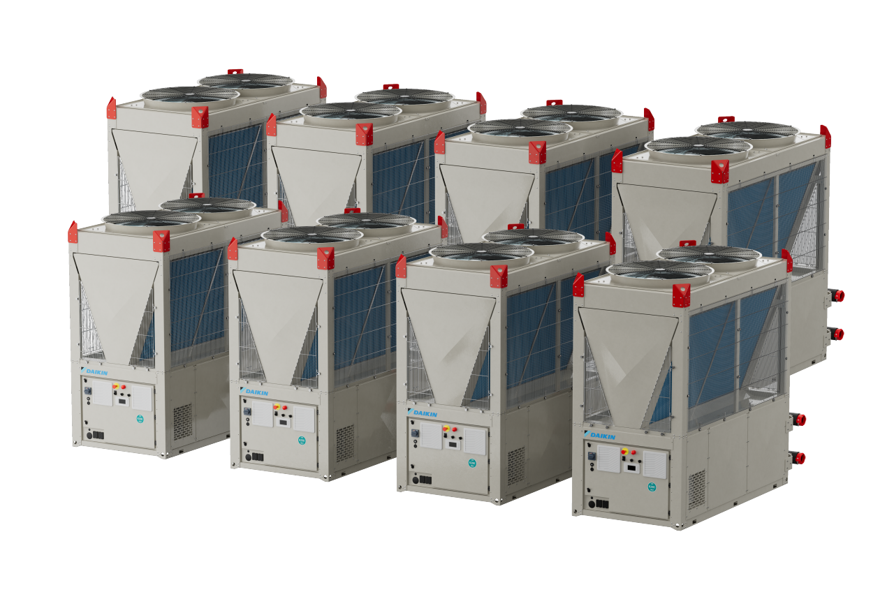 Daikin EWYK-QZ është një pompë nxehtësie modulare me inverter ajër-ujë që përdor agjentin ftohës R-290, e projektuar për të shkallëzuar nga një modul i vetëm 135 kW deri në 2000 kW në shumë grupe.